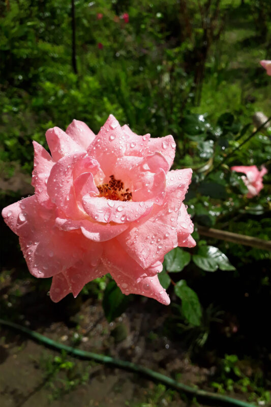 Description: Las gotas de agua en los pétalos de la rosa ilustran fenómenos de transpiración, humedad atmosférica y fotosíntesis. Su estudio aporta conocimientos sobre la fisiología vegetal y la gestión hídrica, crucial en contextos de cambio climático. La interacción de la planta con el microclima, mediante estas gotas, refleja mecanismos de adaptación y resistencia frente a estrés hídrico. Investigaciones basadas en estas observaciones permiten mejorar prácticas agrícolas, promover la conservación y entender cómo las plantas regulan su agua para sobrevivir en entornos cambiantes, contribuyendo a soluciones sostenibles para la protección de ecosistemas y recursos hídricos.