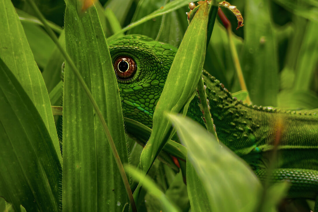 Description: La mirada penetrante de una iguana que se revela como un secreto bien guardado entre la espesura. La textura de su piel se funde magistralmente con la sinfonía de las hierbas, simbolizando la perfecta armonía entre la vida y su entorno. Este retrato invita a reflexionar sobre la fuerza silenciosa de la naturaleza, la resiliencia que se esconde en cada rincón del follaje y la belleza que solo se revela a quienes saben mirar más allá de lo evidente.