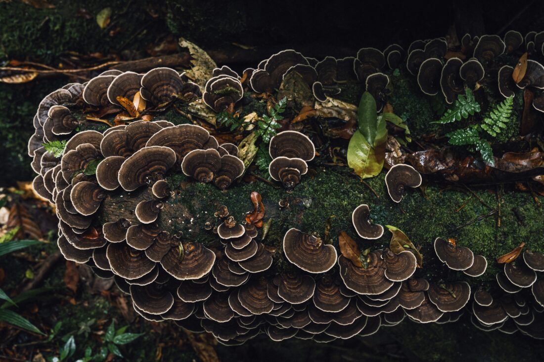 Description: Los hongos, transformadores esenciales, descomponen la materia orgánica y la convierten en nutrientes reutilizables por plantas y otros seres vivos. Su labor mantiene el flujo de la energía y asegura la continuidad de la vida en los ecosistemas. Esta imagen fue tomada en los bosques de Santa Fe, Veraguas, durante una caminata en la que pude apreciar distintas especies creciendo sobre troncos en descomposición. Bajo la superficie, su red de micelio conecta raíces y permite que los árboles intercambien nutrientes e información, como si el bosque respirara y pensara a través de ellos. Son arquitectos del equilibrio, sosteniendo la estabilidad de los bosques. Aunque aún queda mucho por descubrir sobre estos organismos, su valor es incuestionable. Son guardianes del ciclo vital, alquimistas naturales que hacen posible la regeneración. Proteger sus hábitats es honrar esa red invisible que sostiene la vida tal como la conocemos.