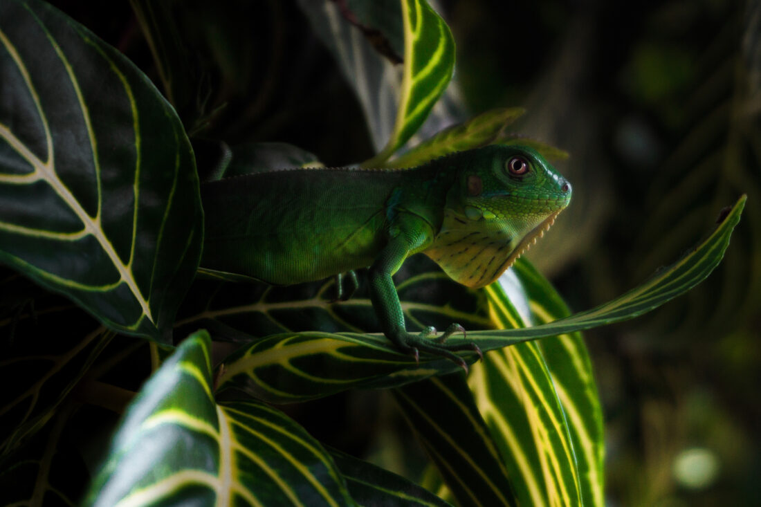Description: Joven, serena, casi paralizada con el verdor que la rodea. Un símbolo de equilibrio natural, majestuosidad y al mismo tiempo un reptil que vive siendo víctima de la caza ilegal. Esta fotografía fue capturada desde mi ventana en una hermosa mañana donde huir no era necesario, donde nadie pensaba en cazarla, solo admirar su belleza y su hermoso color Verde hierba.