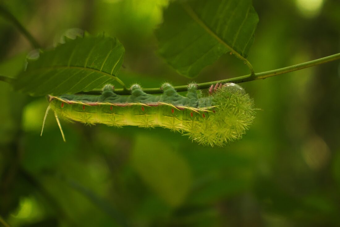 Description: Foto de una oruga de la familia Saturniidae, observada en el Parque Natural Metropolitano. Aunque muchas especies de orugas están cubiertas de espinas urticantes, no son enemigas, sino parte esencial del equilibrio natural. Su apariencia puede generar temor o rechazo, pero solo piden distancia y respeto. Curiosamente, muchos admiran las mariposas y polillas adultas en las que se convertirán, sin reconocer que estas orugas son simplemente una etapa de esa misma belleza.