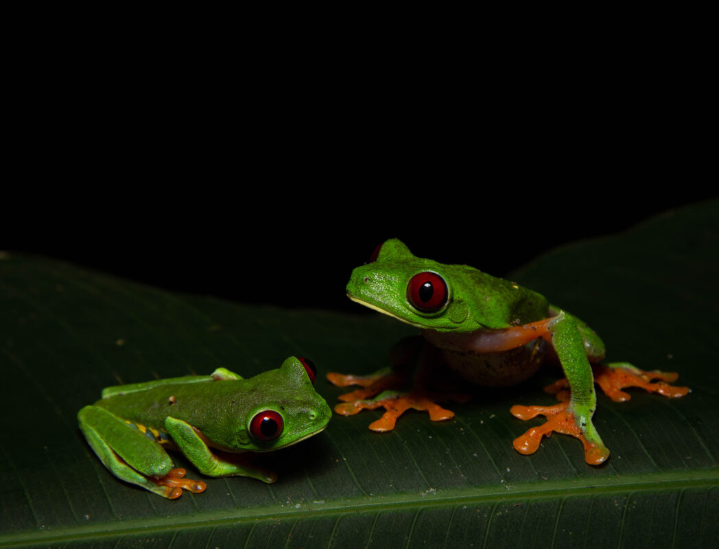 Description: La rana de ojos rojos (Agalychnis callidryas) es una especie emblemática de los bosques tropicales de Panamá. Su llamativo color verde, sus patas anaranjadas y sus ojos intensamente rojos no solo impresionan visualmente, sino que tiene un valor científico fundamental. esta rana actúa como bioindicador, ya que responde con rapidez a cambios en el agua, temperatura y otros factores ambientales. Su estudio permite a los científicos evaluar el estado real de los ecosistemas tropicales. Observar y registrar su comportamiento y distribución contribuye directamente a la investigación científica y a la conservación activa de la biodiversidad panameña.