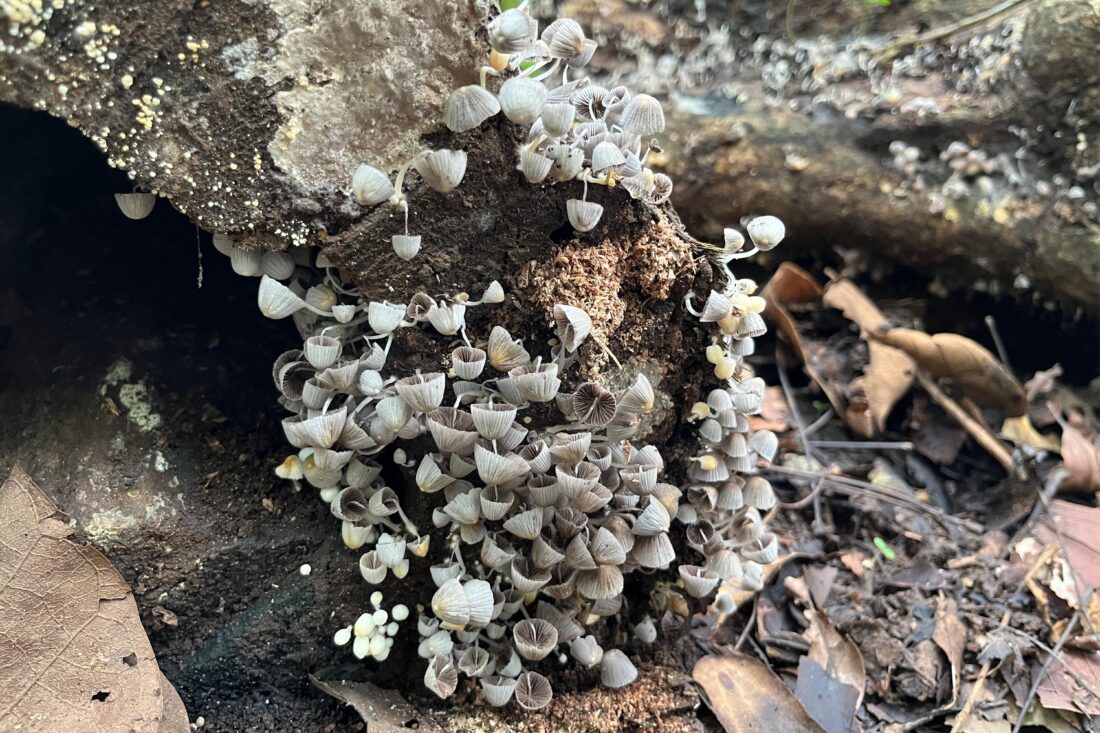 Description: Los hongos son unos de los descomponedores por excelencia. Coprinellus disseminatus es un saprófito que se alimenta principalmente de materia orgánica como troncos y raíces en descomposición. Este proceso es muy importante, ya que permite liberar nutrientes que pueden ser utilizados posteriormente por otras especies. Esta foto fue tomada en el Parque Natural Metropolitano, sendero El Roble