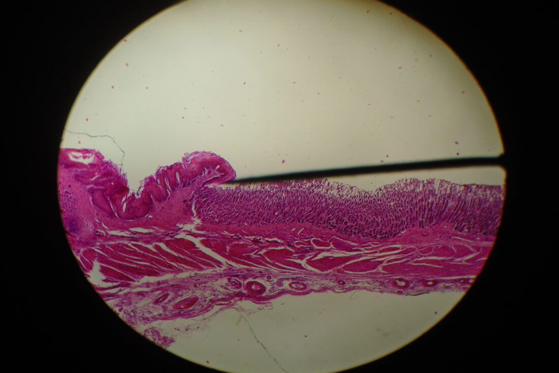 Title: Microfotografía de un corte histológico de la transición entre esófago y estómago