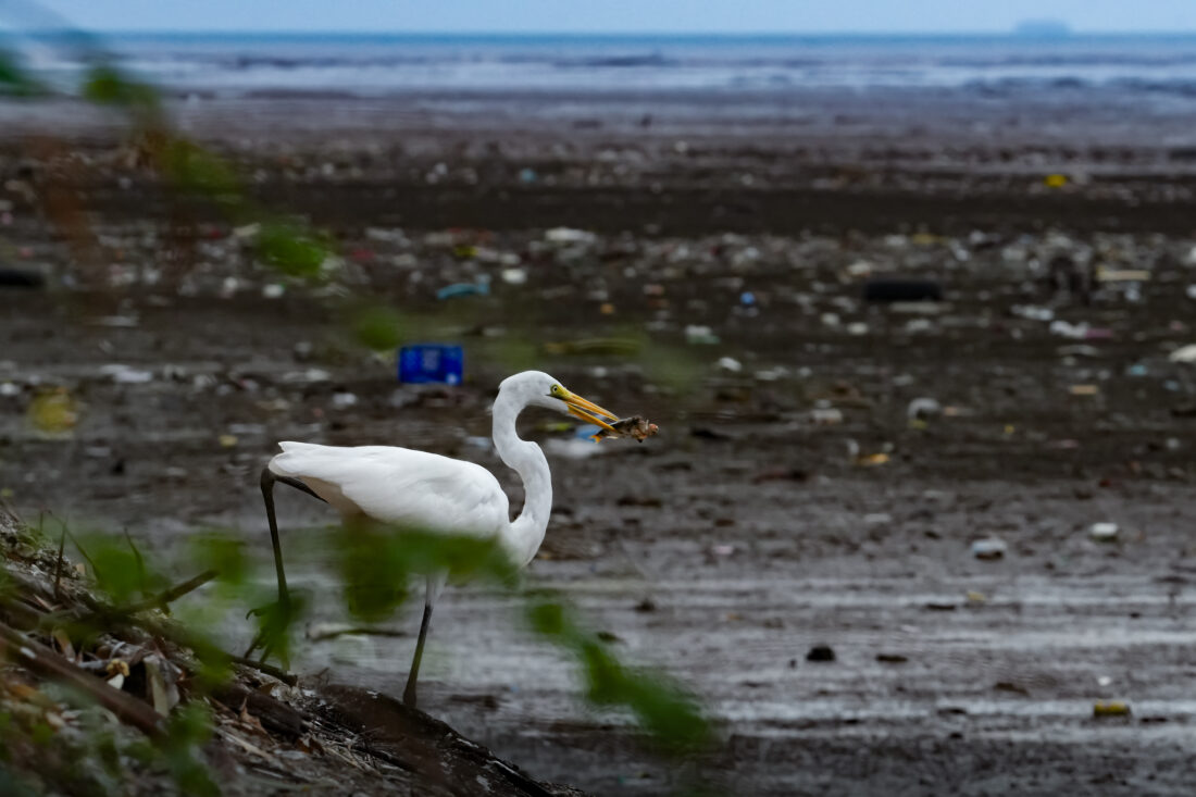 Description: Una Garza blanca (Great Egret, Ardea alba) camina con elegancia sobre la playa de Costa del Este, llevando un pez en el pico, como parte de su rutina natural de caza. Pero lo que debería ser una imagen de armonía se convierte en una postal inquietante: el entorno está cubierto de basura, plástico y residuos que flotan desde la ciudad hacia la Bahía de Panamá. Esta escena, tan cotidiana como alarmante, nos obliga a cuestionarnos: si así luce la superficie de la playa, ¿cómo estarán las aguas de donde provienen nuestros mariscos? El pescado que lleva la garza pudo haber sido contaminado con microplásticos, metales pesados o desechos industriales. Y no es el único que se lo come. La misma cadena alimenticia que sostiene a las aves marinas alimenta también a los mercados locales. La garza continúa su camino. Nosotros, en cambio, deberíamos detenernos y mirar más allá del ave: mirar el ecosistema que estamos envenenando, y que aún así, insiste en darnos de comer.