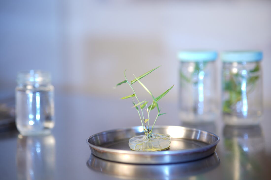 Description: Propagación de Guadua angustifolia en condiciones in vitro. Especie eficiente en captura de CO₂, control de erosión y regulación hídrica. Su cultivo controlado permite reforestación y abastecimiento de material para construcción sostenible, reforzando su valor ambiental y económico.