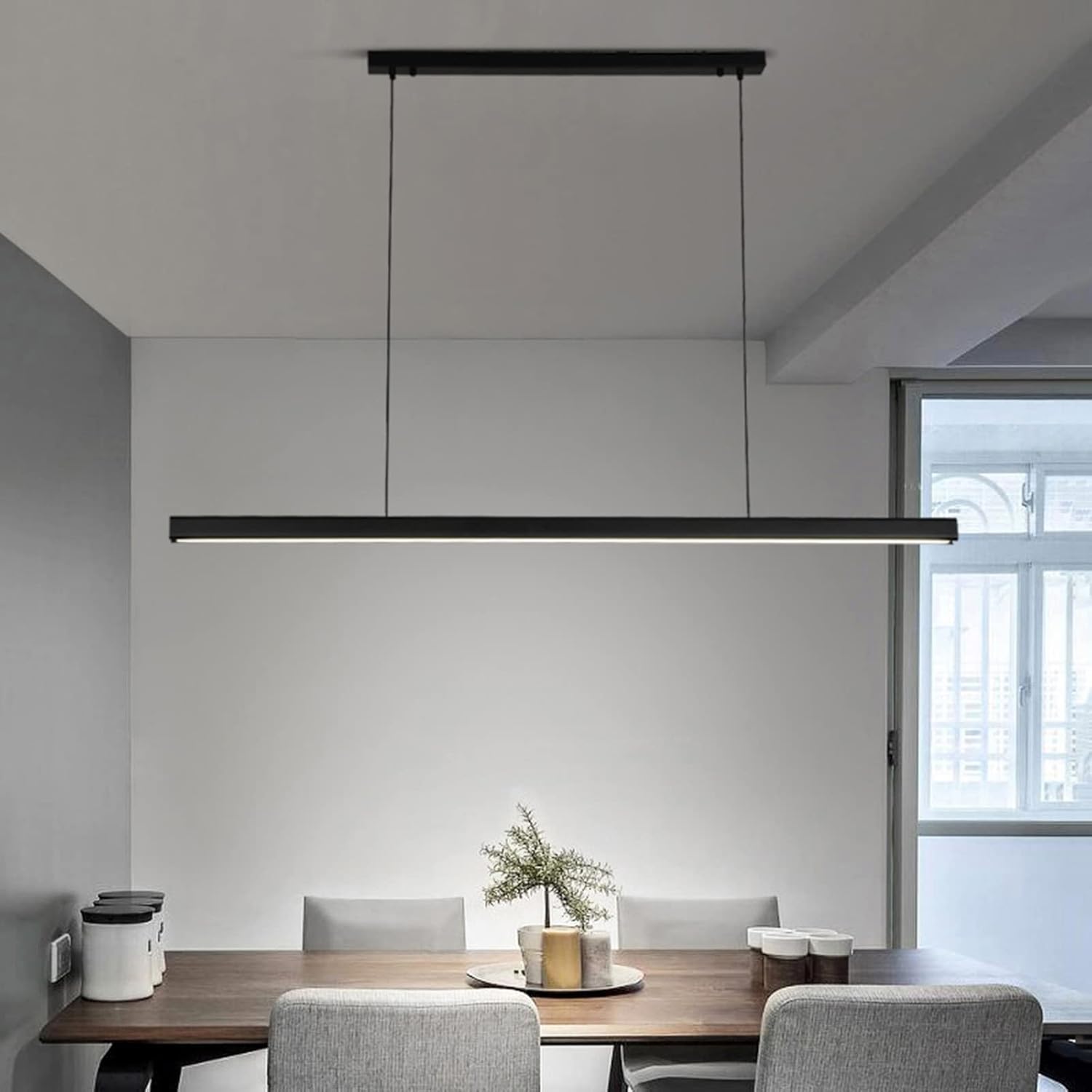 Enhance your commercial or home space with the MUZI lighting Modern LED Chandelier. Measuring 31.5 inches, this chandelier is a perfect blend of style and functionality. The adjustablecolortemperature from 3000k to 6000k gives you the freedom to customize the lighting according toyourneeds.Inanoffice setting, the cooler 6000k light can boost productivity by providing a bright and clear environment. No need to get up to adjust the light; simply use the remote to change the brightness and set the perfect mood. Whether it's a busy lunch rush in a restaurant or a late - night work session in an office, you can easily control the lighting ambiance.Installation is a breeze, thanks to the adjustable cable and the well - designed ceiling mount.providing flexibility for different ceiling heights. The included ceiling mount boxes, sized at about 15.7*1.96*1.37 inches, ensure a sturdy and secure installation. With a hole spacing of 13.78 inches, they are compatible with a wide range of ceiling fixtures, making the setup process quick and hassle - free. You can position the chandelier at the ideal height for your space. Over a kitchen island, it can serve as focused task lighting, while in a large office or restaurant, it can be hung higher to evenly light the entire area.Its modern one - line design is not only aesthetically pleasing but also versatile, fitting seamlessly into various decor themes.