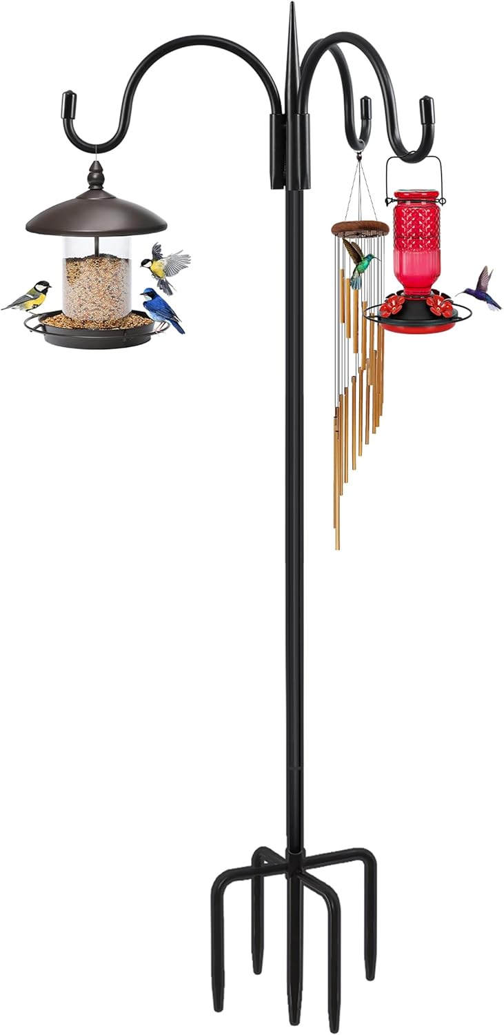 FEED GARDEN [Upgrade Version 76 Inch Three Shepherd Hooks for Outdoor,Bird Feeder Pole with 5 Prong Base, Adjustable Shepard Hooks for Hanging Plant, Solar Lanterns, Wind Chimes, 1 Pack