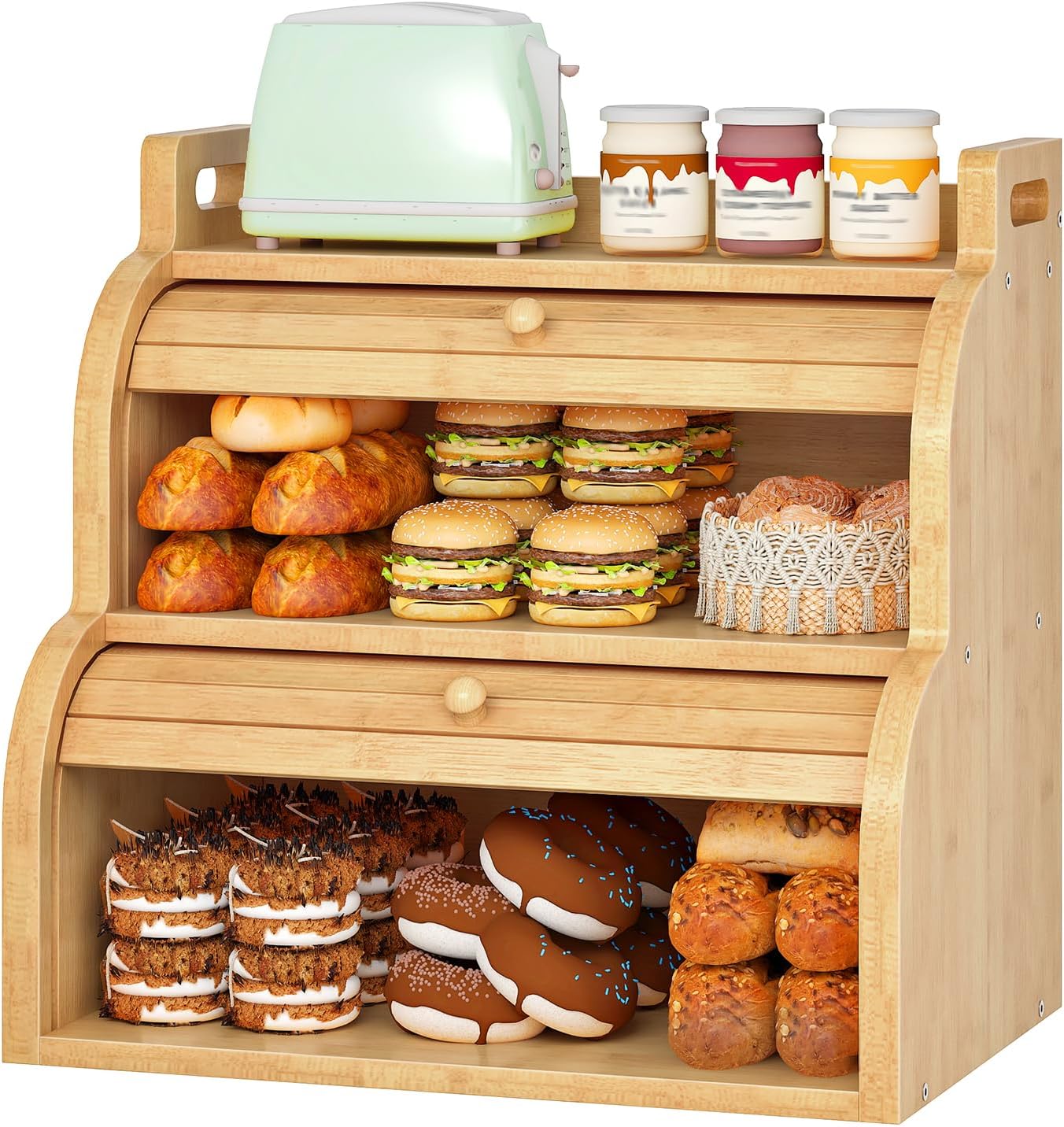 | Other Special Features of the Product | 2-Tier Roll-Top Bread Box, Bamboo Bread Bin for Dining Room, Bamboo Bread Box, Bread Box for Homemad, Bread Box for Kitchen Countertop |