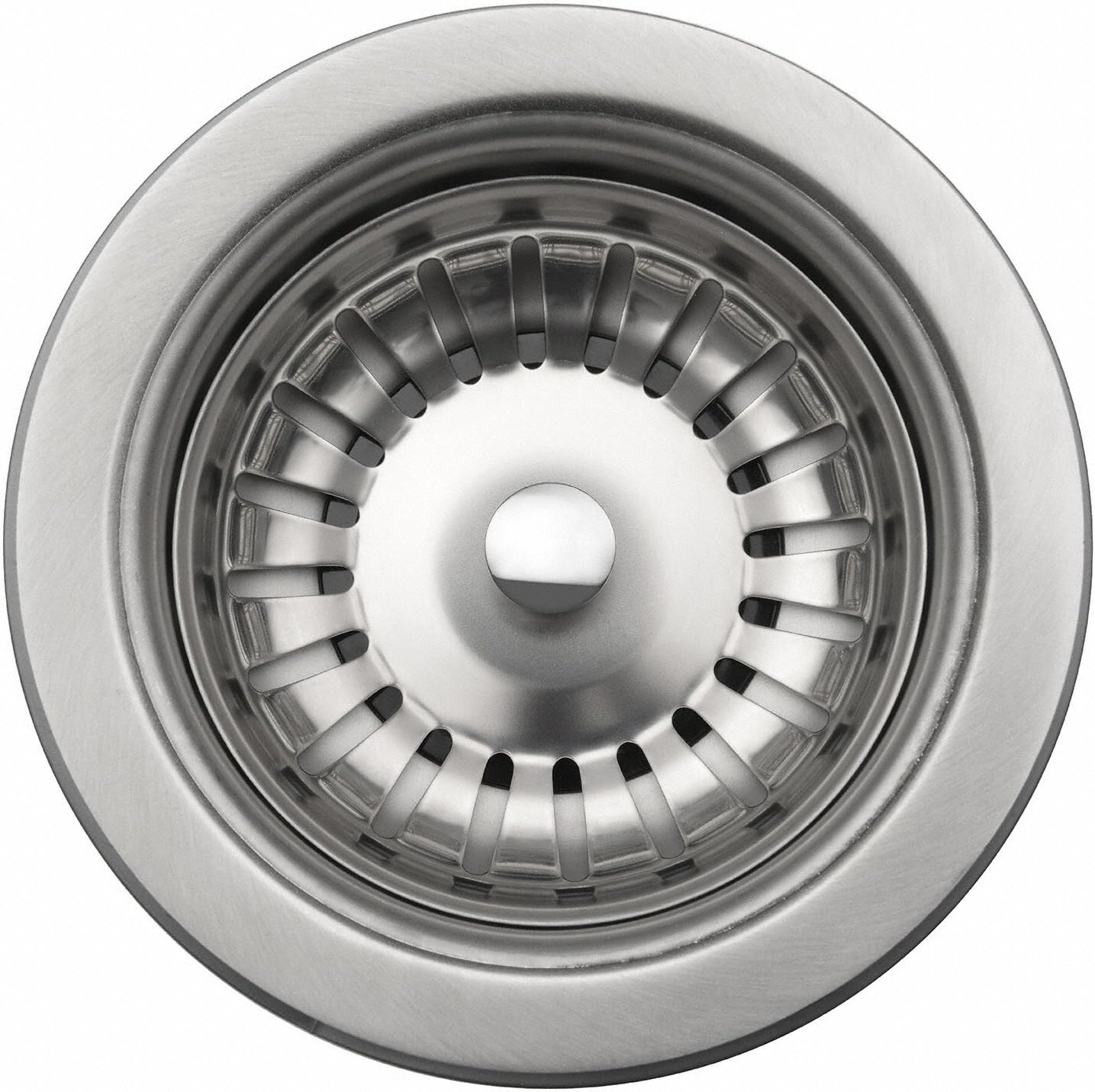 The KRAUS Sink Strainer/Stopper has a universal design that fits most garbage disposal models on the market. The versatile design allows you to push down the strainer to seal the sink drain, or lift it up to remove debris and get full access to the garbage disposal. Made with durable corrosion-resistant stainless steel, this is a high-quality upgrade to standard silicone stoppers. Sink strainer/stopper helps prevent damage to your garbage disposal by keeping unwanted items from falling into the grinding chamber and works as a splash guard to keep food waste from splashing out of the drain while disposal is in use. Sleek stainless steel finish and a low-profile design create a clean and streamlined look.