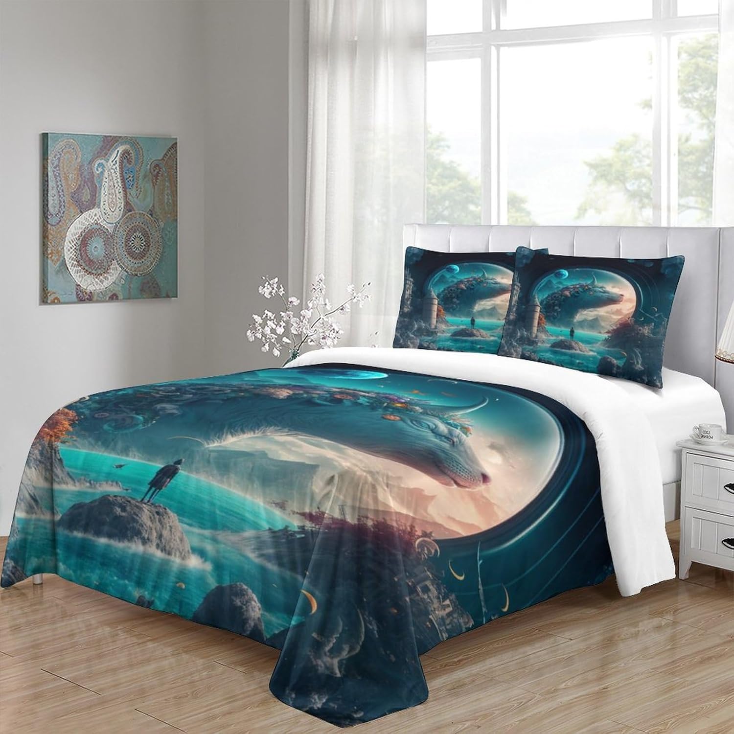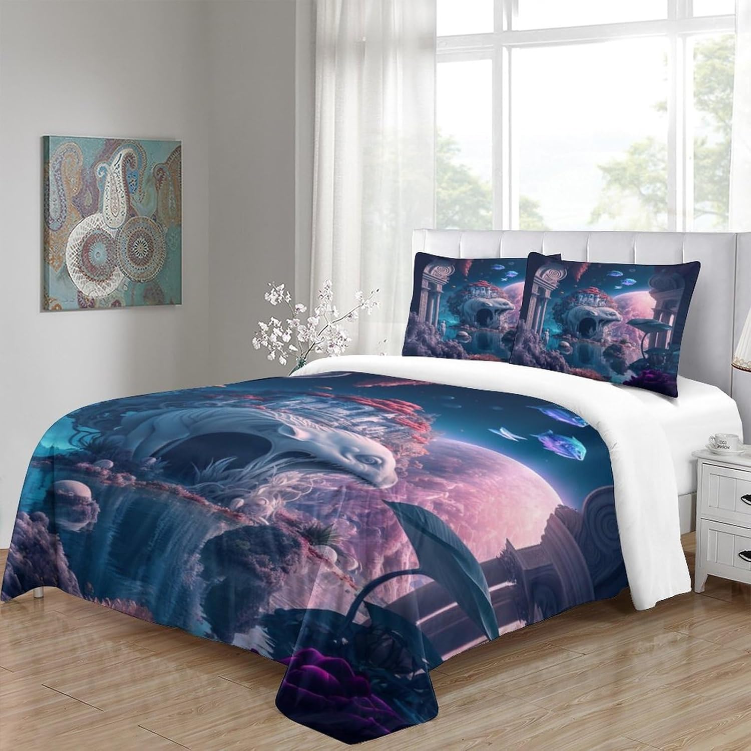 Printed Quilt Cover 3D Print Pillow Cases Bedding Set Soft Easy Care Bedding Quilt Cover Set Quilt Cover Children Room Decor 2 Pillowcases Twin(173x218cm)