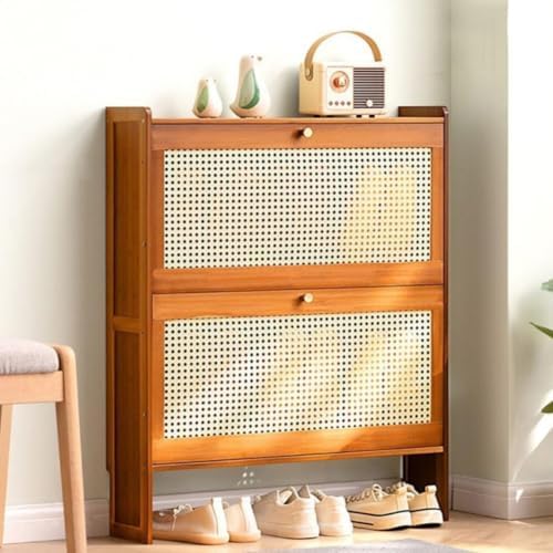 Introducing our multifunctional flip shoe cabinet, designed to blend seamlessly into your home while enhancing your space with a touch of Bohemian style. Crafted from high-quality Nanzhu, this elegant cabinet showcases a beautiful woven rattan appearance that complements any interior decor, making it the ideal storage solution for your living room, foyer, study, or bedroom. Key Features: 1. **Space-Saving Design**: With a slim thickness of just 17cm, this shoe cabinet is perfect for small areas, allowing you to maximize your available space without compromising on style. 2. **Durability and Stability**: Engineered for strength, this cabinet supports a substantial load, ensuring it remains a reliable part of your home for years to come. 3. **Moisture-Proof and Breathable**: The door panel is designed to resist moisture, keeping your footwear fresh and dry while allowing air circulation. 4. **Whisper-Quiet Operation**: Our innovative silent buffer design ensures that the cabinet door opens and closes smoothly, providing a quiet and user-friendly experience. 5. **Wall-Hugging Fit**: The reserved skirting allows for close placement against the wall, further enhancing its space-saving capabilities. Product Specifications: - **Product Name**: Multi-Layer Storage Shoe Cabinet - **Color**: Bamboo Original Color - **Material**: Nanzhu - **Applicable Scenarios**: Perfect for use in living rooms, foyers, studies, and bedrooms. Package Includes: 1 Slim Shoe Storage Cabinet for Hallway Please Note: Slight variations in dimensions (1-3cm) may occur due to manual measurement. For any inquiries or assistance, our professional after-sales team is ready to help you within 24 hours. Elevate your home organization with this stylish and functional shoe cabinet today!