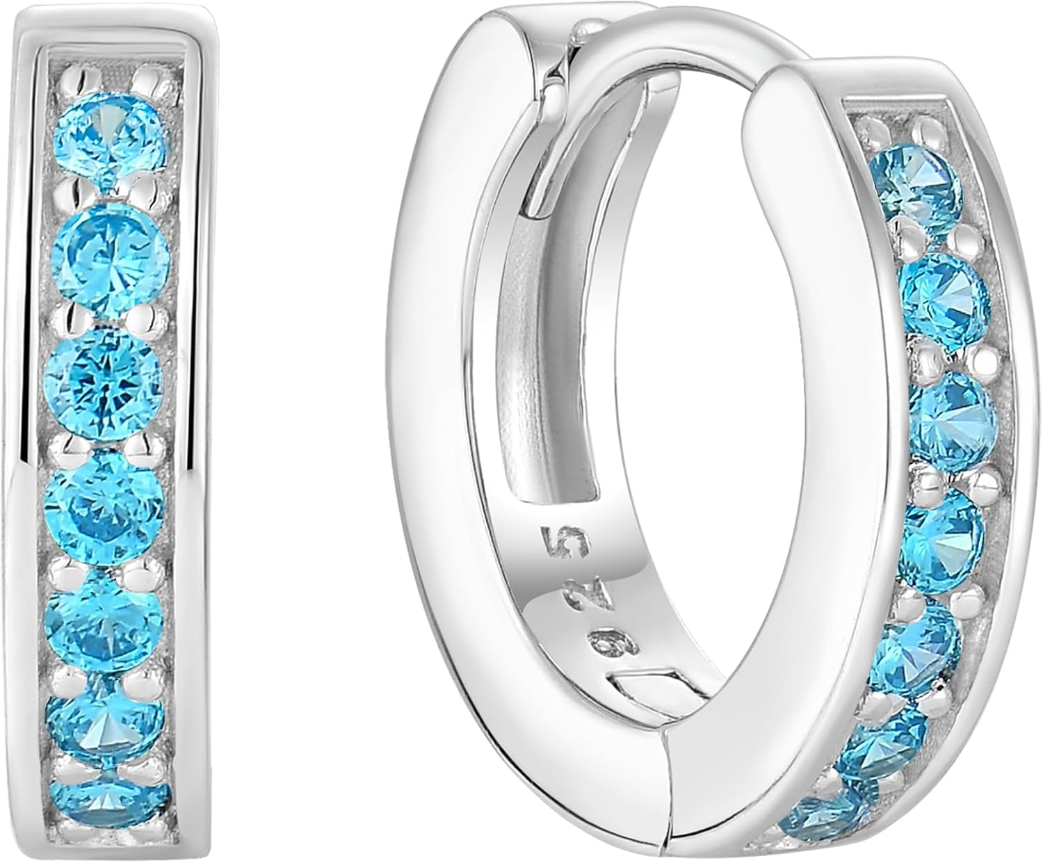 YL 13mm Halo Hoop Earrings 925 Sterling Sliver Round Huggie Earring Princess Cut Birthstone Jewelry for Women